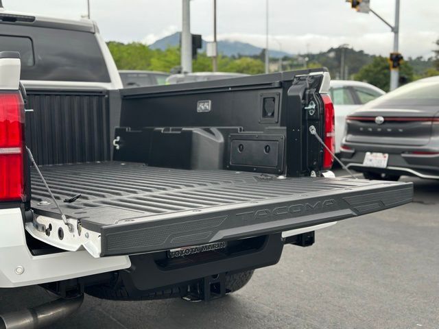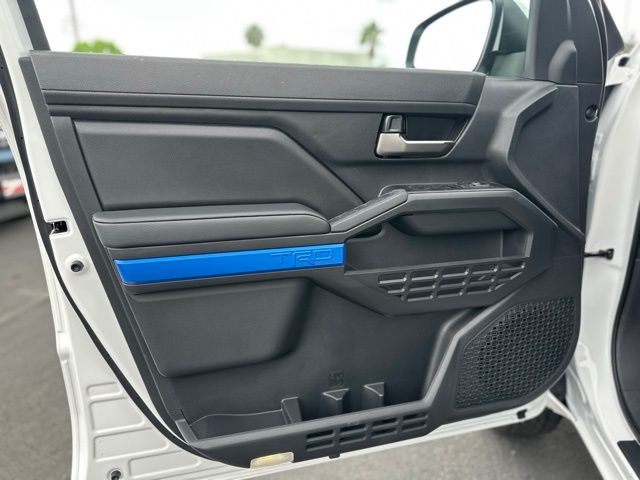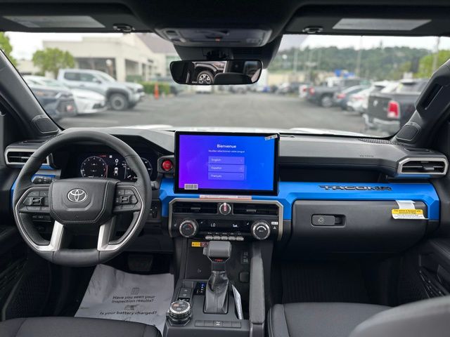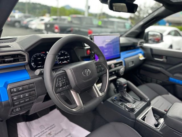 Powered by a turbocharged 2.4L 4-cylinder engine paired with an advanced 8-speed automatic transmission, the Tacoma delivers responsive performance whether navigating city streets or tackling off-road trails. Its four-wheel-drive system ensures traction and control in diverse conditions, complemented by tow hooks and a tow hitch ready for your next adventure. Safety is paramount with features like Blind Spot Monitor, Lane Departure Warning, Front Collision Mitigation, and Cross-Traffic Alert, providing peace of mind on every drive. Inside, the driver enjoys bucket seats with adjustable lumbar support for comfort during long hauls, while the pass-through rear seat adds practicality for gear and passengers alike. The cabin integrates smart technology seamlessly, including adaptive cruise control with steering assist, a back-up camera, Bluetooth connectivity, and LED headlights for enhanced visibility. Heated mirrors and privacy glass add convenience and style, making the Tacoma as functional as it is tough. Whether hauling equipment or exploring new horizons, this Tacoma is engineered to meet the demands of active lifestyles with confidence and style.