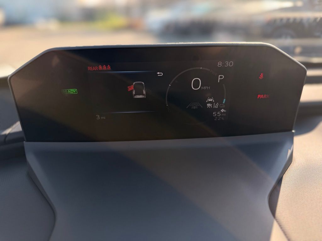 Top-mount Multi-Information Display (MID) with indicators and 7-in. LCD display with speedometer, charge meter, power output meter, drive mode indicators, instrumentation and customizable settings, odometer, tripmeters, clock, outside temperature, rear passenger seatbelt indicators, fuel economy information, trip timer, charging information and settings, and warning messages -