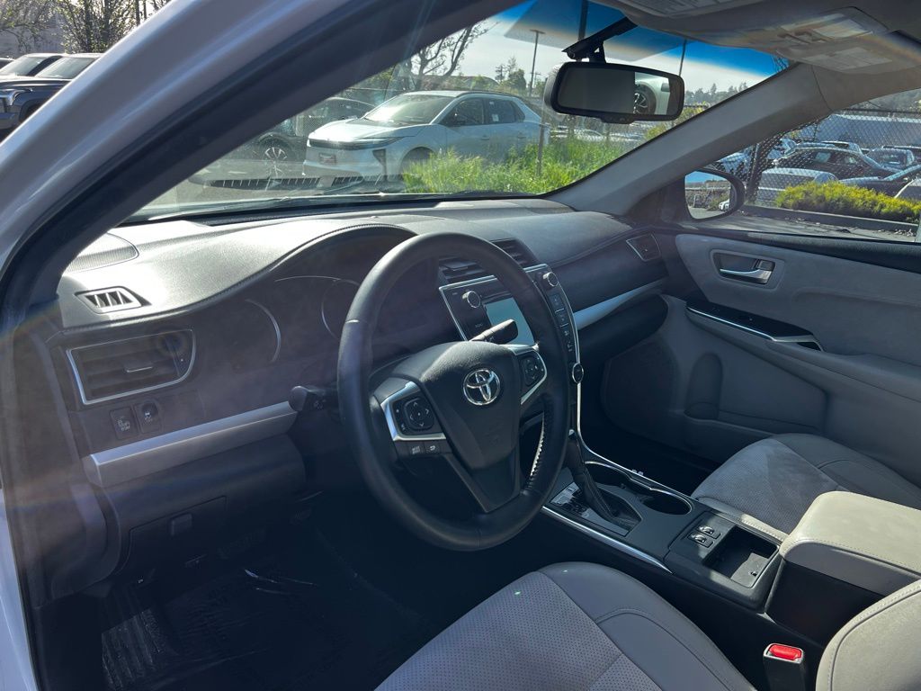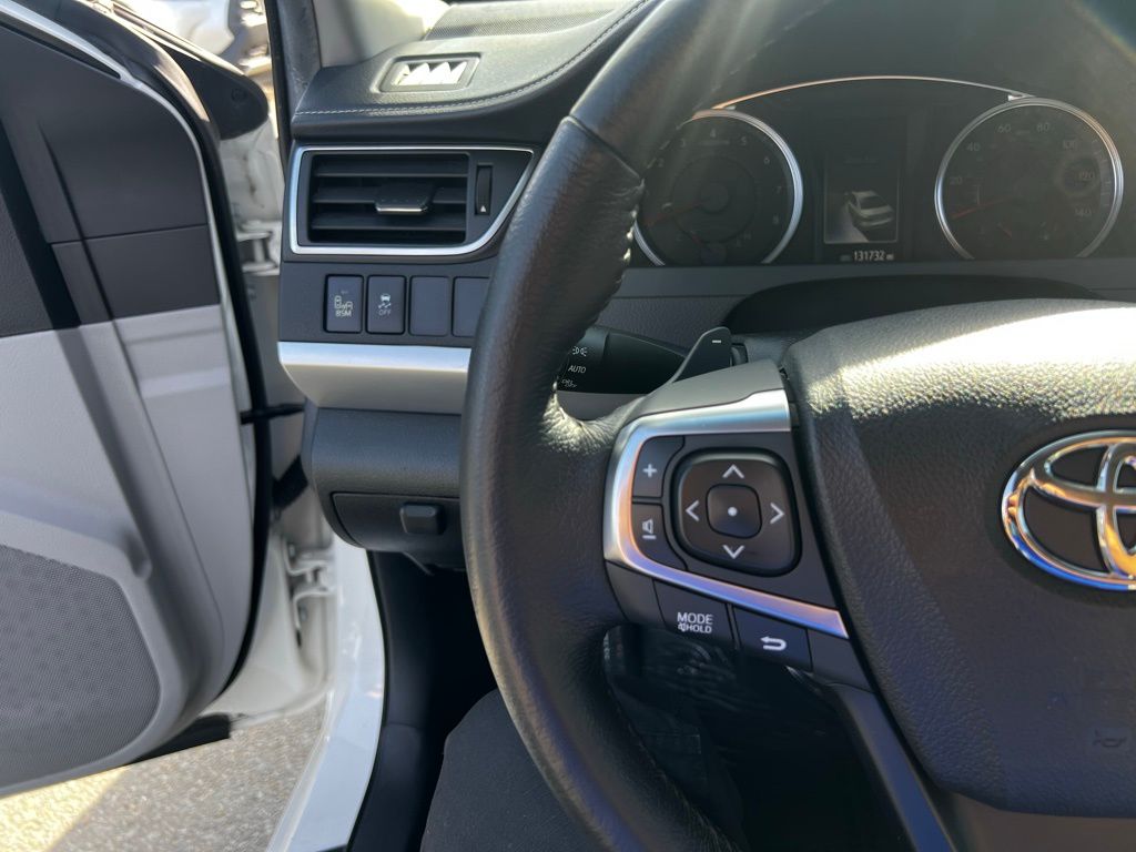 Step into the 2015 Toyota Camry XSE and discover a driving experience that combines power, safety, and style. This used Camry, dressed in the elegant Blizzard Pearl finish, is more than just a sedan—it's a statement. Under the hood, the robust 3.5L V6 engine delivers a spirited performance, effortlessly managed by a 6-speed automatic transmission with dual shift mode, ensuring a smooth and responsive ride.