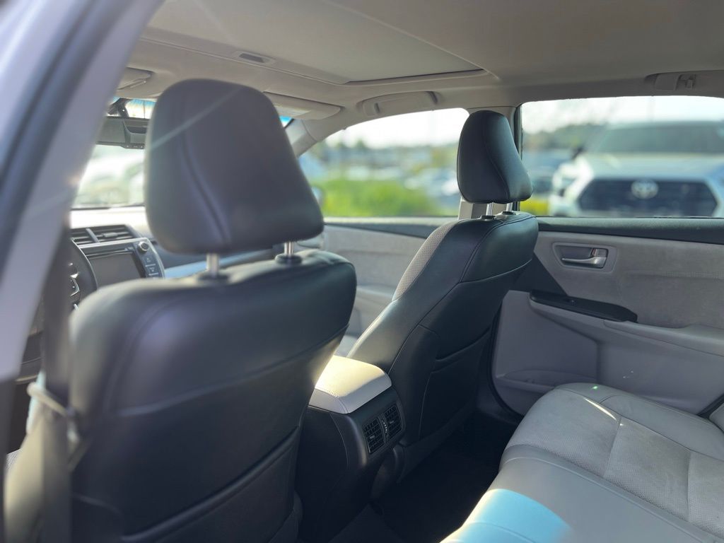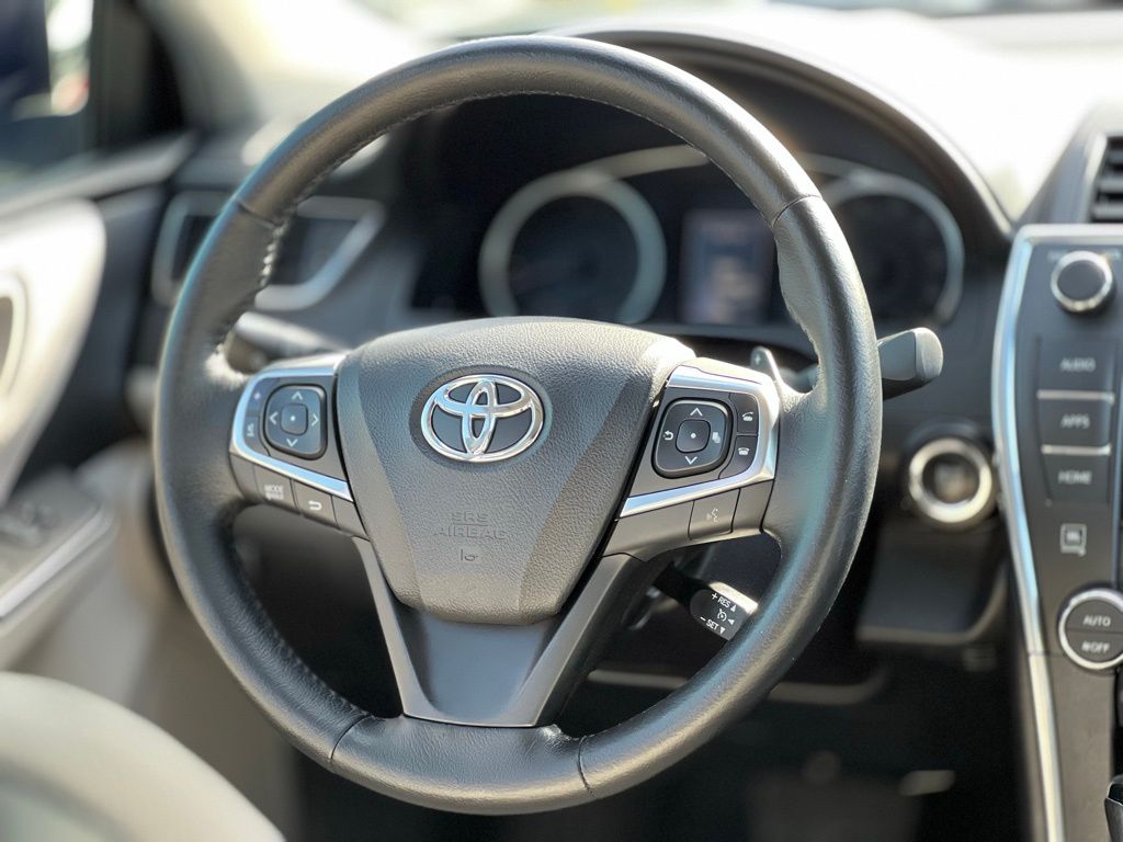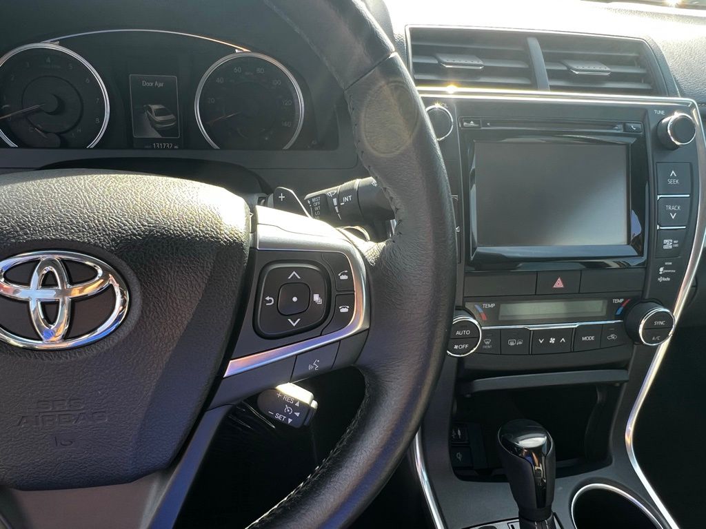 Inside, the Camry XSE offers a luxurious experience with heated front seats and a power-adjustable driver's seat, ensuring comfort tailored to you. The leather steering wheel and auto-dimming rearview mirror add a touch of sophistication, while the advanced navigation system and Bluetooth connectivity keep you connected and on course.