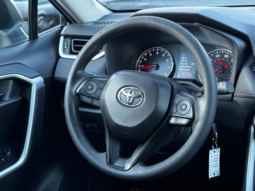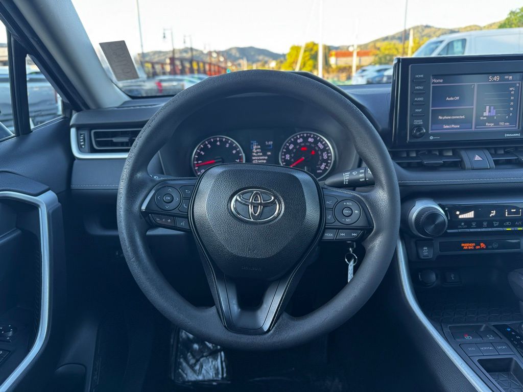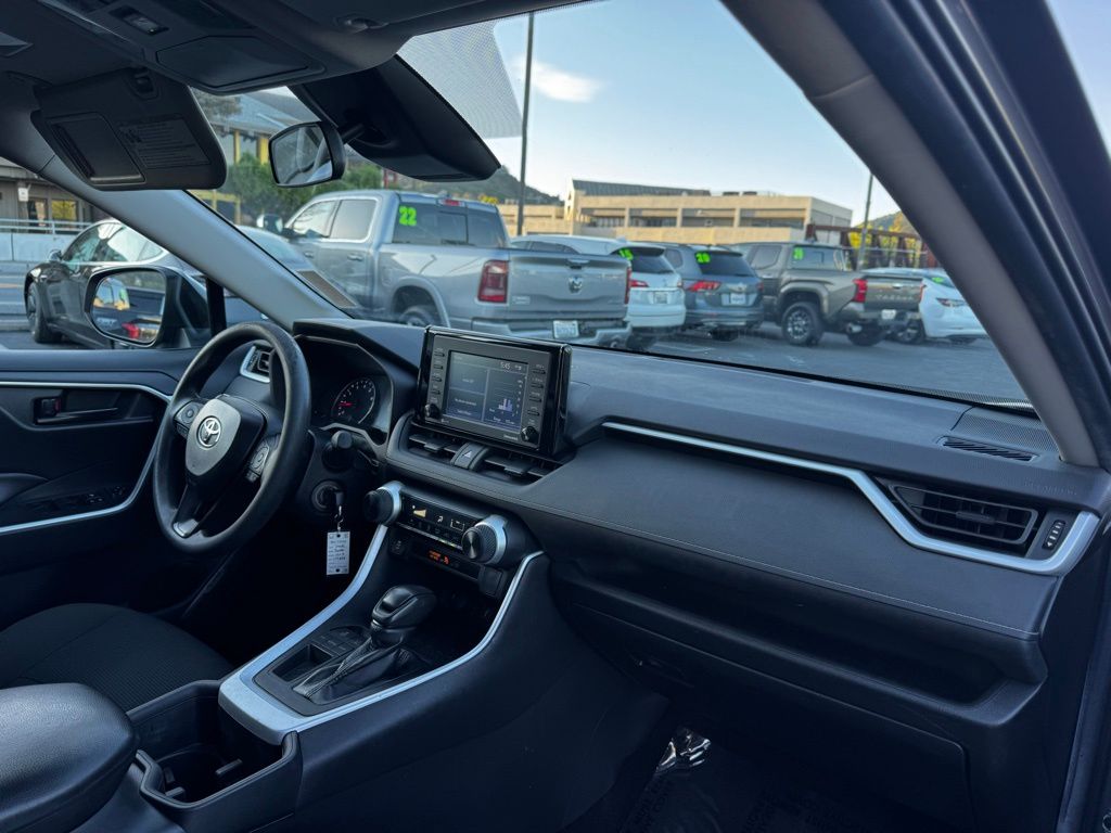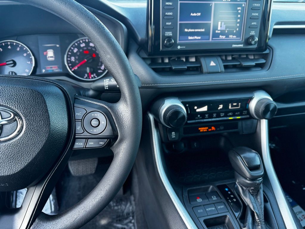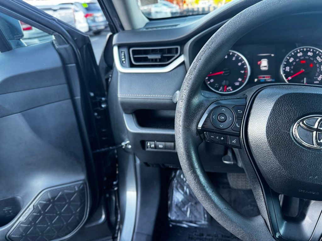 This RAV4 LE is powered by a responsive 2.5L 4-cylinder engine paired with an 8-speed automatic transmission, delivering smooth acceleration and efficient fuel economy. Its front-wheel-drive system with brake-actuated limited-slip differential enhances traction and control, perfect for navigating city streets or weekend adventures. Safety is paramount, featuring Toyota’s comprehensive suite including lane departure warning, lane keeping assist, front collision mitigation, and adaptive cruise control, providing peace of mind on every journey. LED headlights and automatic high beams ensure clear visibility in varying conditions, while privacy glass adds a touch of sophistication and comfort. Inside, the cloth bucket seats offer comfort and practicality, with a pass-through rear seat for flexible cargo and passenger arrangements. Stay connected effortlessly through Bluetooth, smart device integration, and an available WiFi hotspot, making every drive productive or entertaining. The back-up camera and steering wheel audio controls enhance convenience and safety, while keyless entry adds ease to your daily routine. With its blend of technology, safety, and versatility, this RAV4 LE is ready to support your active lifestyle and keep you moving confidently wherever the road takes you.