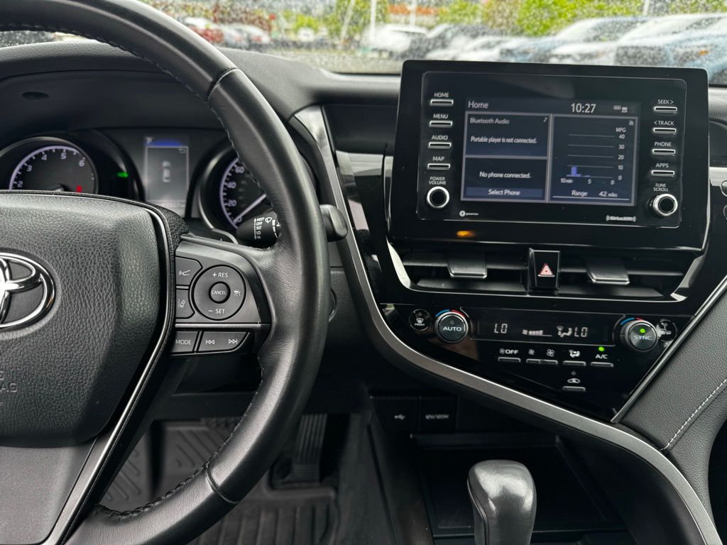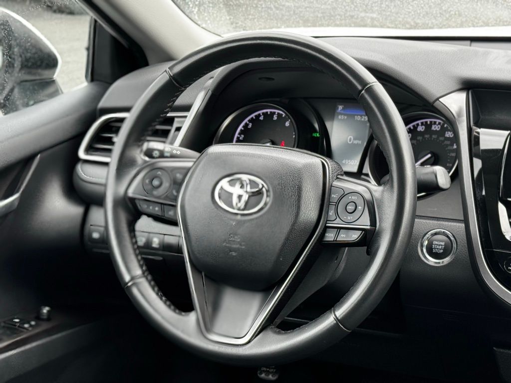 This Camry SE is powered by a responsive 2.5L I4 engine paired with an 8-speed automatic transmission that offers smooth acceleration and efficient fuel use, perfect for city streets and highway cruising. The front-wheel-drive setup enhances handling, while performance tires and aluminum wheels provide a balanced, engaging ride. Inside, the driver-focused cabin features a power-adjustable seat with lumbar support and a leather-wrapped steering wheel, ensuring comfort on longer drives. Adaptive cruise control and lane keeping assist work seamlessly to reduce fatigue and keep you centered in your lane, while front collision mitigation and evasive steering assist add layers of protection. Stay connected with Bluetooth integration, steering wheel audio controls, and a WiFi hotspot to keep your devices charged and ready. The back-up camera and keyless entry simplify parking and access, while LED headlights with automatic high beams improve visibility in all conditions. With a rear spoiler adding a sporty touch, this Camry SE combines practicality and style, making it an ideal choice for drivers who value safety, technology, and a dynamic driving experience.