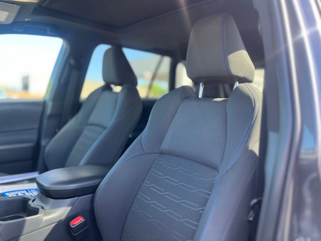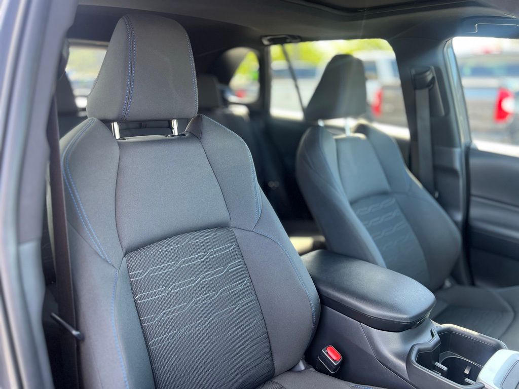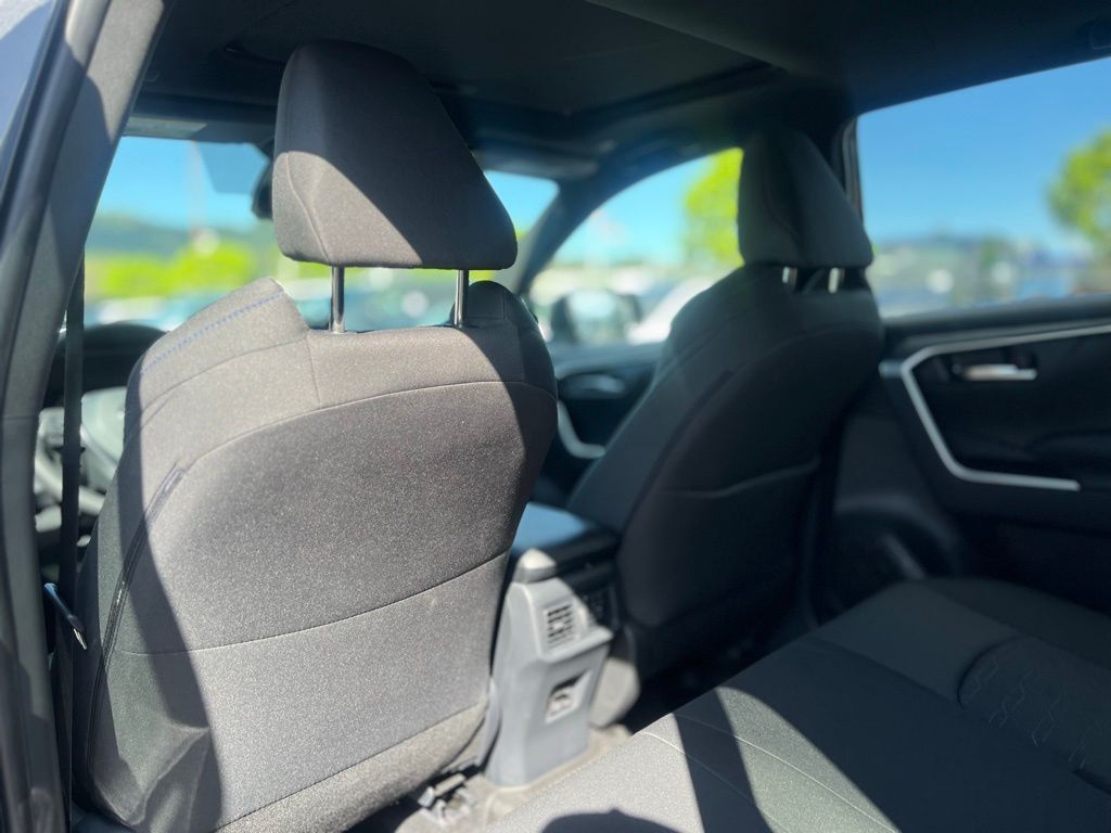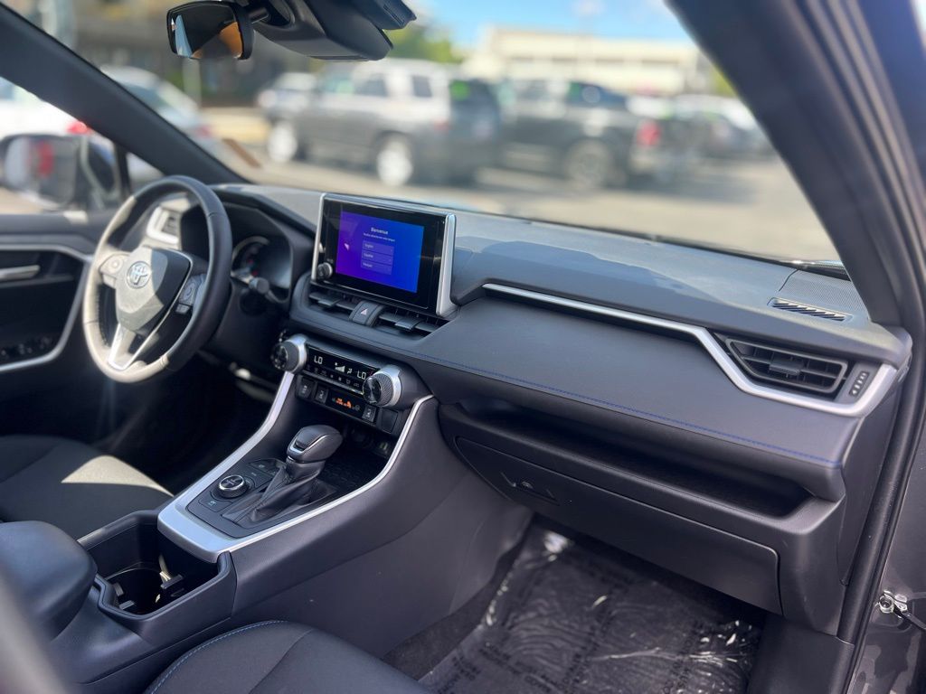 Designed for drivers who value both performance and responsibility, this hybrid SUV features a responsive 2.5L 4-cylinder engine paired with an electronically controlled continuously variable transmission (eCVT) and all-wheel drive, delivering smooth acceleration and confident handling in all conditions. The lithium-ion traction battery ensures impressive fuel efficiency without compromising power. Inside, enjoy the convenience of a power driver seat with adjustable lumbar support and a spacious rear bench with pass-through seating, ideal for both daily commutes and weekend adventures. Safety is paramount with Toyota’s comprehensive suite including Blind Spot Monitor, Lane Departure Warning, Lane Keeping Assist, Front Collision Mitigation, and Cross-Traffic Alert, providing peace of mind on every journey. Adaptive Cruise Control and Brake Actuated Limited Slip Differential enhance control and comfort on highways and winding roads alike. Stay connected effortlessly via Bluetooth, smart device integration, and a built-in WiFi hotspot, while the power liftgate and cargo shade add practicality for active lifestyles. The RAV4 Hybrid SE’s LED headlights, aluminum wheels, and rear spoiler complete its dynamic, athletic look—perfect for those who demand style and substance in one versatile package.
