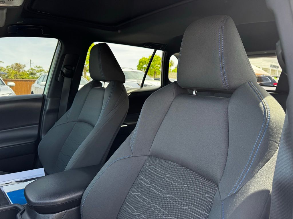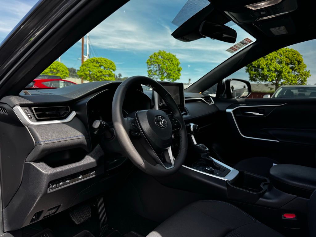 This RAV4 Hybrid SE offers a dynamic 2.5L 4-cylinder engine paired with an advanced hybrid system and CVT transmission, delivering impressive fuel economy without sacrificing power. Its all-wheel-drive system with brake-actuated limited slip differential ensures confident handling on diverse terrains, making it ideal for both city commutes and weekend adventures. Inside, enjoy the comfort of power-adjustable driver’s seat with lumbar support and versatile rear seating with pass-through access, accommodating your lifestyle and cargo needs effortlessly. Stay connected and entertained with smart device integration, Bluetooth connectivity, HD radio, and a WiFi hotspot, keeping you linked wherever the road takes you. Safety is paramount, featuring a comprehensive suite including blind spot monitor, lane departure warning with lane keeping assist, front collision mitigation, and cross-traffic alert, providing peace of mind on every journey. Additional conveniences like a power liftgate, LED headlights with automatic high beams, and keyless start enhance your daily driving experience. The Magnetic Gray Metallic exterior, complemented by aluminum wheels and a subtle rear spoiler, adds a refined, sporty touch to this versatile SUV built to keep pace with your active lifestyle.